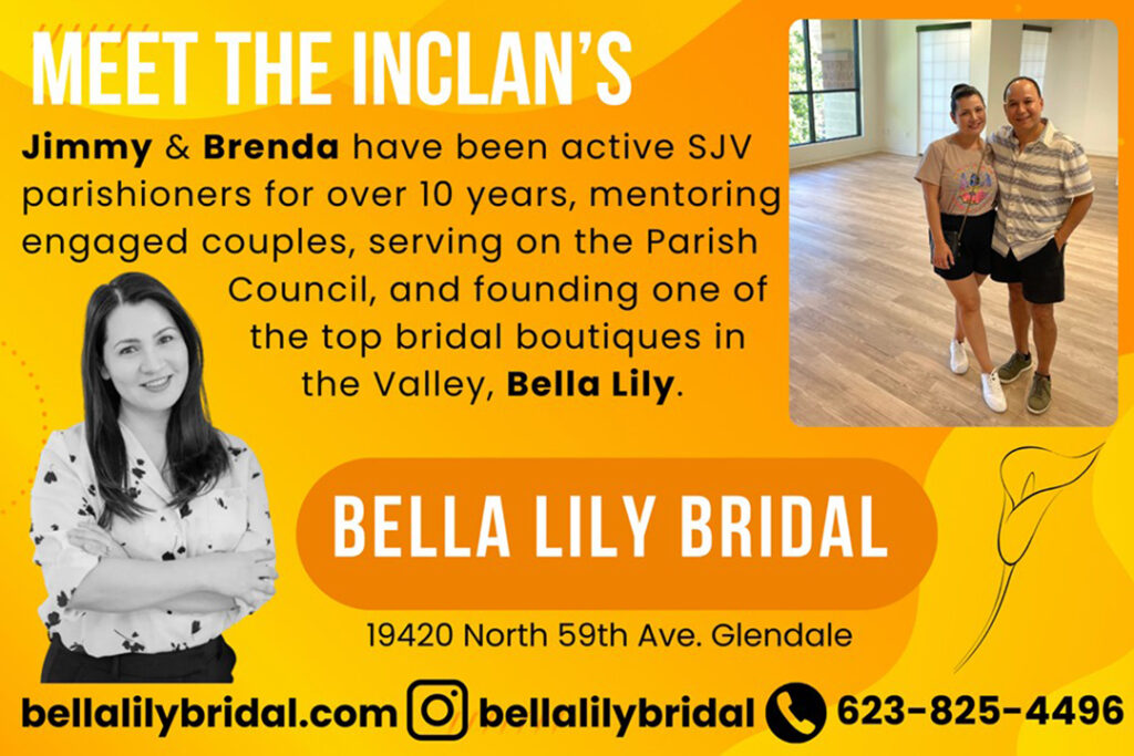 Jimmy & Brenda have been active SJV parishioners for over 10 years, mentoring engaged couples, serving on the Parish Council, and founding one of the top bridal boutiques in the Valley, Bella Lily.